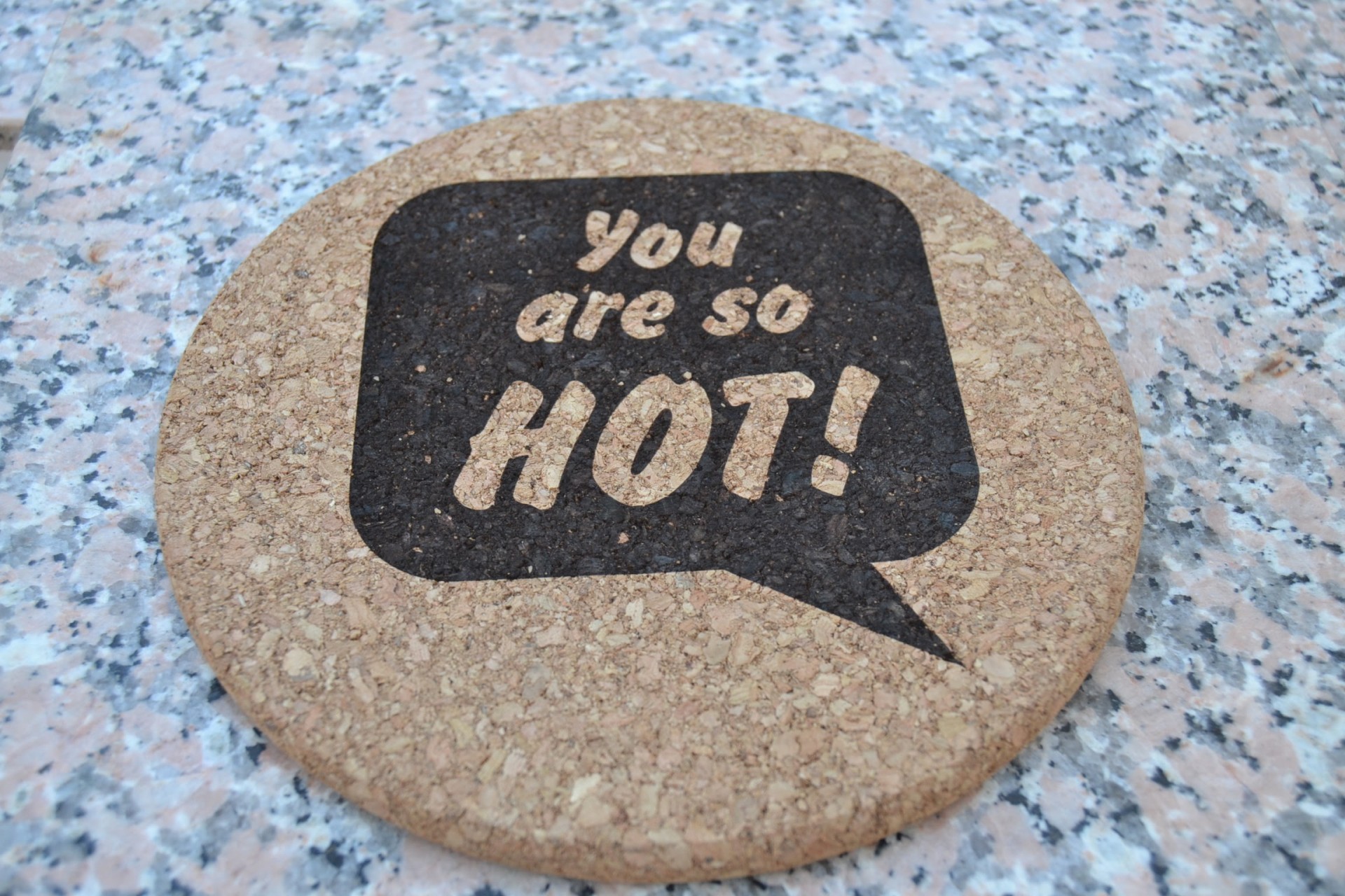 Base para apoio de recipientes quentes como tachos e panelas para proteção das superfícies. Em cortiça gravada com 18 cm de diametro.